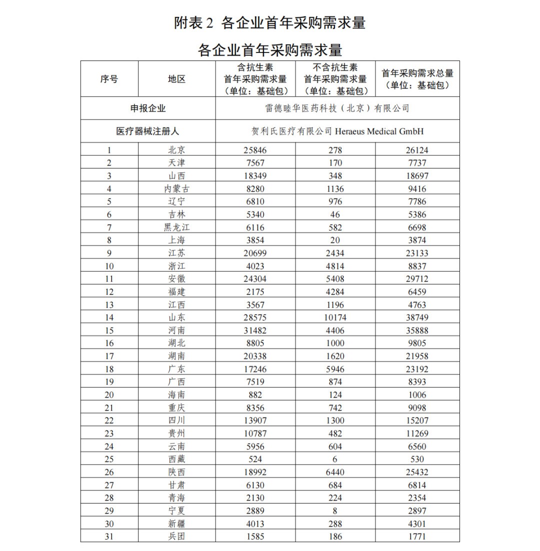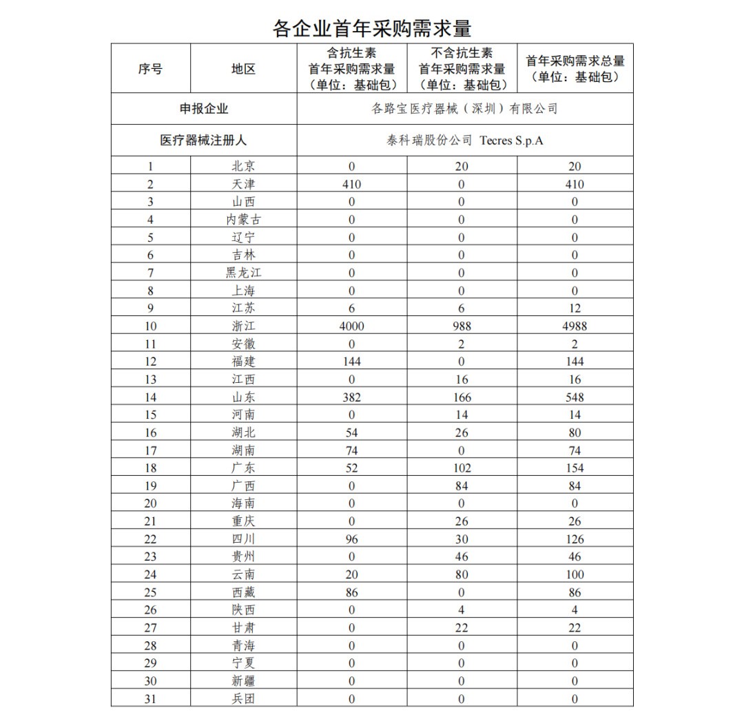 隨《公告》發布的正式版《采購文件》,公布了聯盟各地區首年采購需求量明細表,部分截圖如下(完整見文末)。