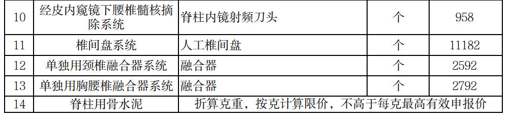 骨科脊柱類耗材集采中選產(chǎn)品以含伴隨服務(wù)費(fèi)的中選價(jià)格為支付標(biāo)準(zhǔn),使用超過(guò)或少于中選產(chǎn)品系統(tǒng)配備數(shù)量的中選產(chǎn)品部件,以各系統(tǒng)中選部件的中選價(jià)格為支付標(biāo)準(zhǔn),納入醫(yī)保支付范圍,醫(yī)保基金據(jù)實(shí)按規(guī)定比例支付。