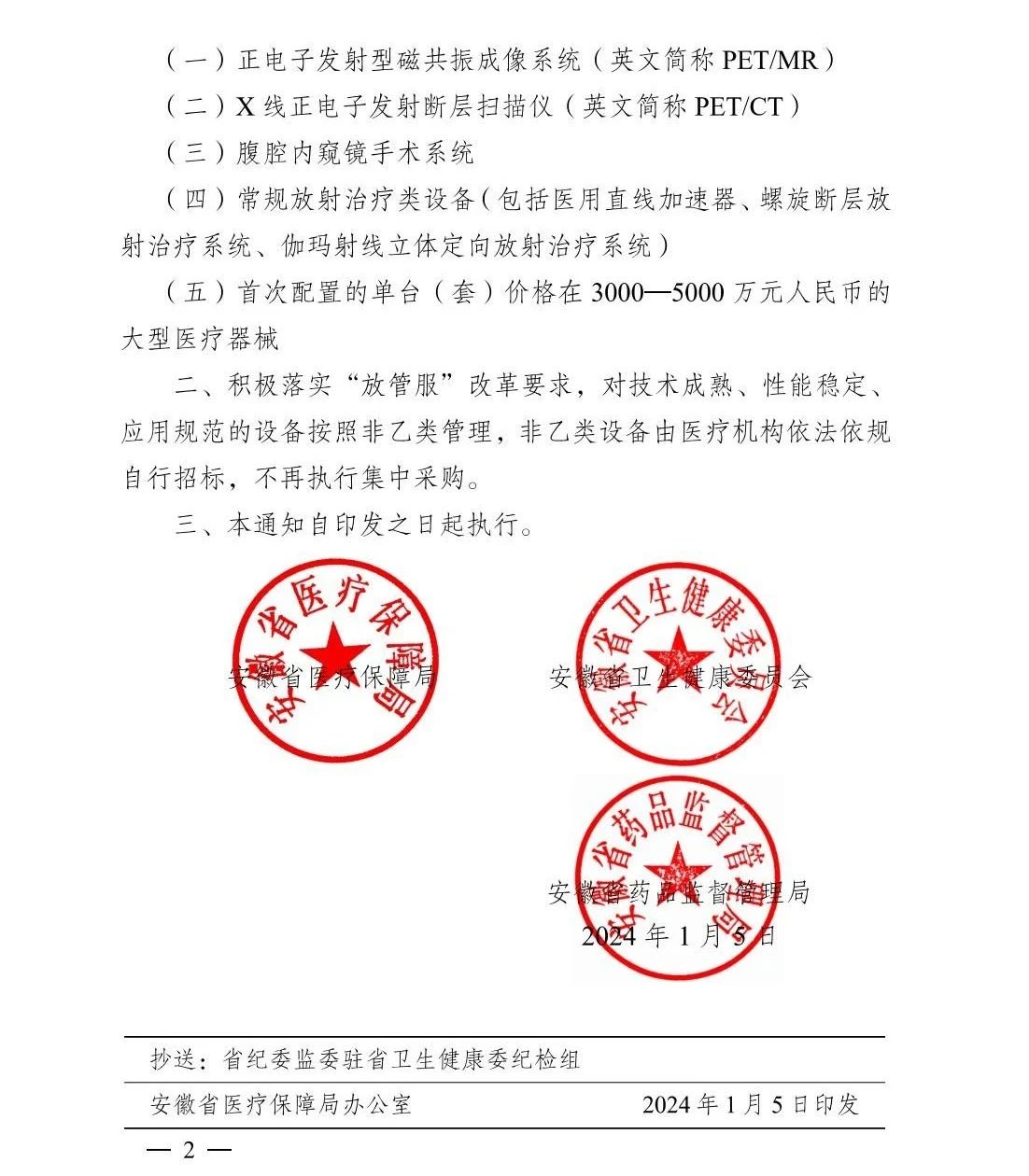 近日,安徽省醫(yī)保局、衛(wèi)健委、藥監(jiān)局聯(lián)合發(fā)布關于調整全省大型醫(yī)用設備集中采購目錄的通知(完整見文末)。