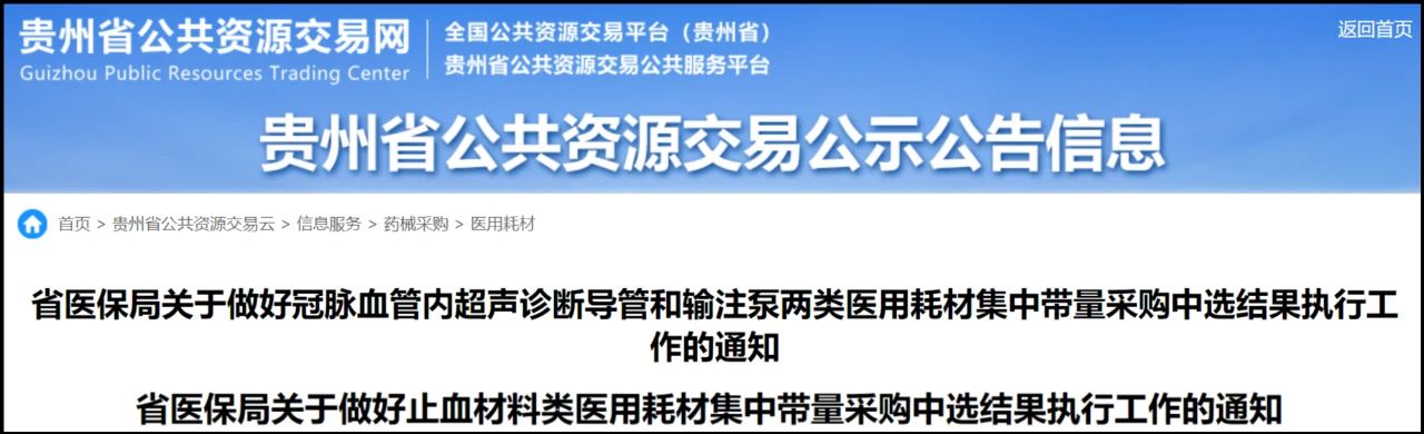 完整中選結果見文末同日,貴州公共資源交易網發布《省醫保局關于做好冠脈血管內超聲診斷導管和輸注泵兩類醫用耗材集中帶量采購中選結果執行工作的通知》《省醫保局關于做好止血材料類醫用耗材集中帶量采購中選結果執行工作的通知》。