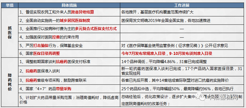 醫療保障局上線后,備受關注。梳理其上線后的工作,雖一手抓醫保、一手降藥(耗)價,開展了多項令人矚目的工作(具體工作及進展見下圖)。但或許是精力有限,又或許是醫用耗材在整個醫藥領域占比小等原因,尚未真正影響醫用耗材領域。