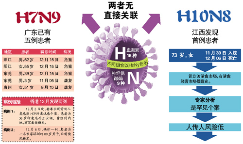 中國(guó)疾病預(yù)防控制中心、江西省疾控中心等機(jī)構(gòu)的研究人員報(bào)告說(shuō),去年11月30日,江西省南昌市一名73歲女性因發(fā)燒入院治療,之后出現(xiàn)多器官功能衰竭,于12月6日死亡。這名女子在發(fā)病前4天曾去過(guò)活禽市場(chǎng)。研究人員在該病例的化驗(yàn)樣本中檢測(cè)出甲型流感病毒,并進(jìn)一步確定為新型H10N8禽流感病毒。
