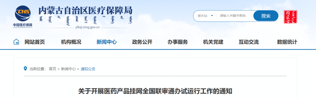 11月25日,內蒙古發布《關于開展醫藥產品掛網全國聯審通辦試運行工作的通知》,自2024年11月25日起試運行聯審通辦工作。