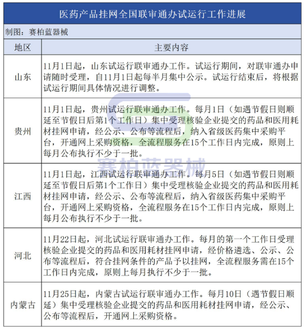 據觀察,河北、山東、貴州、江西等多地此前也發布了相關通知,啟動醫藥產品掛網全國聯審通辦試運行工作。