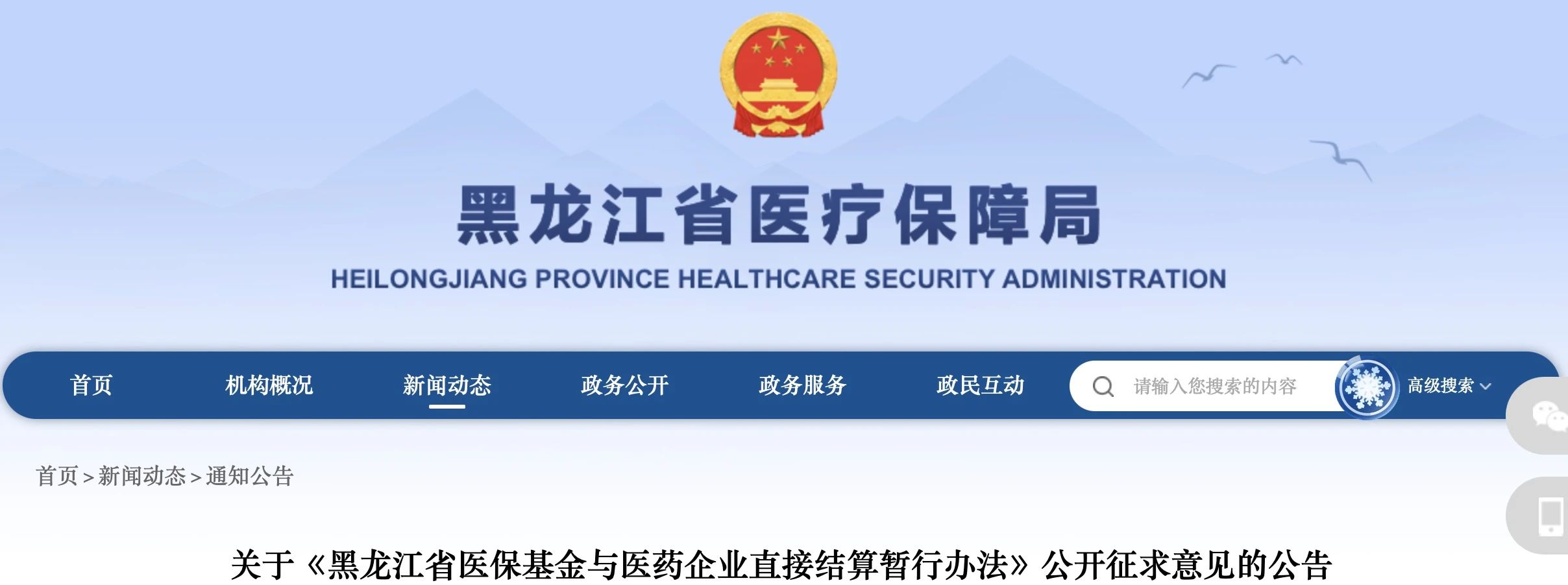 今日(5月15日),黑龍江醫保局官網發布《黑龍江省醫保基金與醫藥企業直接結算暫行辦法》(完整見文末)。