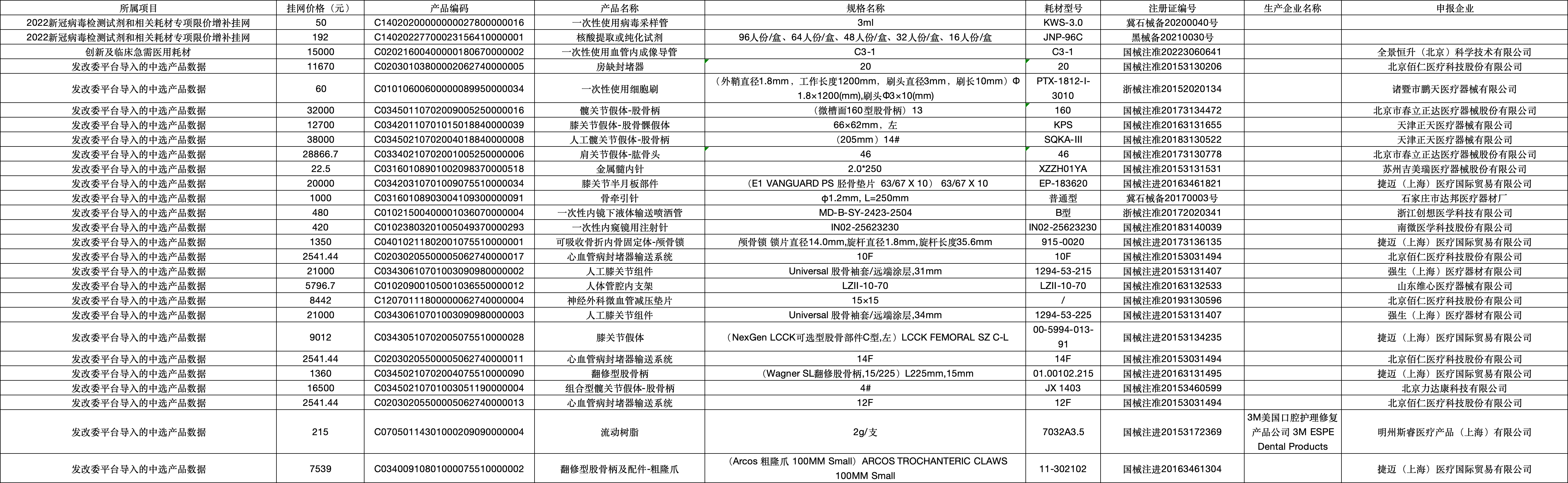 《公告》提到,此次價(jià)格聯(lián)動(dòng)企業(yè)維護(hù)數(shù)據(jù)時(shí)間為2025年8月21日-9月4日,并公布《2023年1月-2025年1月未進(jìn)行過價(jià)格調(diào)整且存在訂單的醫(yī)用耗材產(chǎn)品明細(xì)》,具體如下: