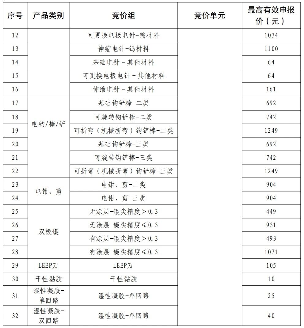 產(chǎn)品類(lèi)別、采購(gòu)分組、競(jìng)價(jià)單元及最高有效申報(bào)價(jià)情況如下: