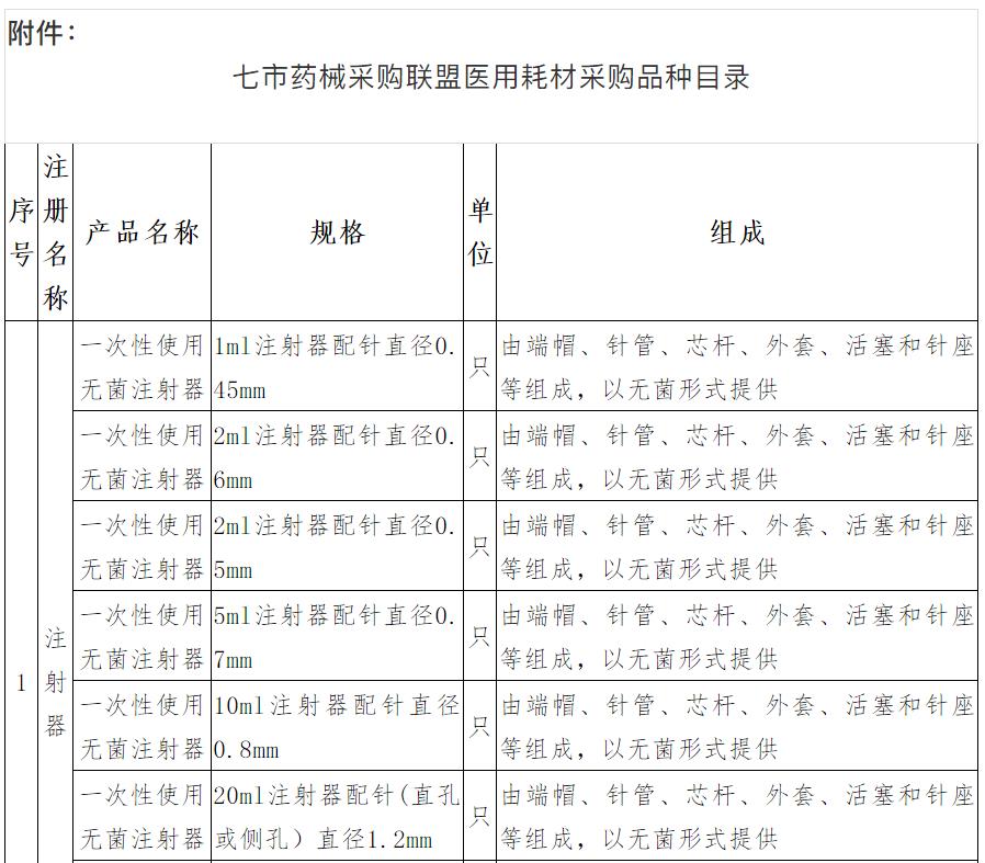 《采購(gòu)公告》顯示,淄博-青島-煙臺(tái)-濰坊-威海-東營(yíng)-濱州七市藥械采購(gòu)聯(lián)盟對(duì)注射器、導(dǎo)尿管、導(dǎo)尿包、吸氧裝置、采血針5個(gè)產(chǎn)品共19個(gè)規(guī)格,進(jìn)行聯(lián)合議價(jià)、帶量采購(gòu)、以量換價(jià)(文末附具體品種目錄)。