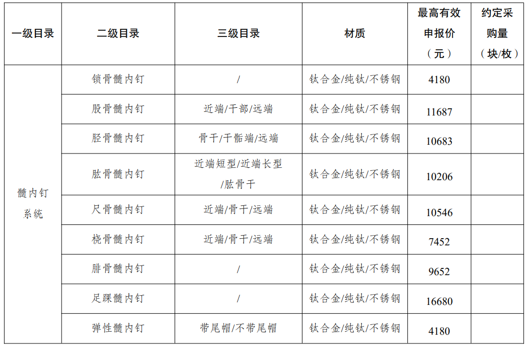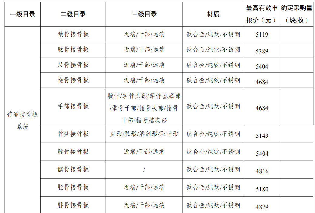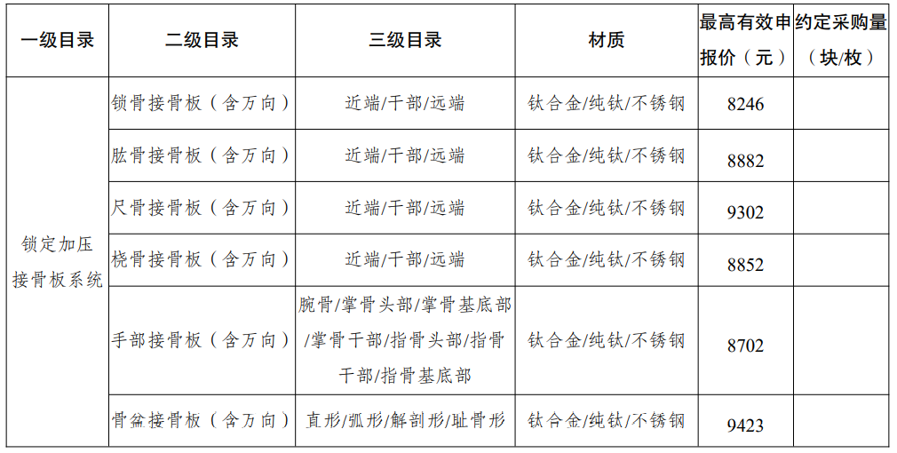 采購品種:鎖定加壓接骨板系統、普通接骨板系統、髓內釘系統、單獨使用的螺釘等骨科創傷類產品,以及部分5mm集成超聲刀頭。
