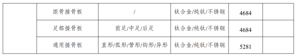 骨科創傷類產品具體目錄如下:
