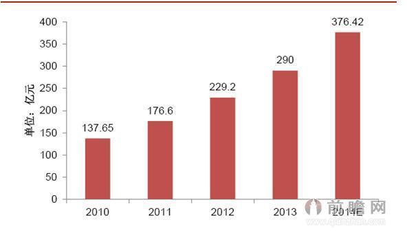 國內家用醫療器械市場規模同樣增長迅速,根據上述報告數據,2010年中國家用醫療市場規模為137.65億元,2013年增長之290億元,預計2014年市場規模為376.42億元,高于同期醫藥工業增速的7.26%和醫療器械全行業的11.70%。