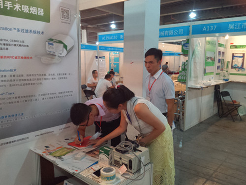 主要參展產品:美國愛爾曼雙頻射頻機及最新款醫用吸煙器;德國徠卡光電一體陰道鏡;德國狼牌wolf脊柱內窺鏡;英國佳樂雙極等離子電切系統;美國庫克COOK導絲等。產品吸引了眾多嘉賓的眼球,并經過工作人員的現場演示,熱心講解,都產生了有極大的興趣,躍躍欲試。