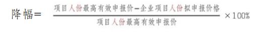 競價規(guī)則:在各檢測項目人份最高有效申報價的基礎(chǔ)上,申報整體降幅,按降幅由高到低的順序確定排名,降幅最高的為第一名,次高的為第二名,依此類推。