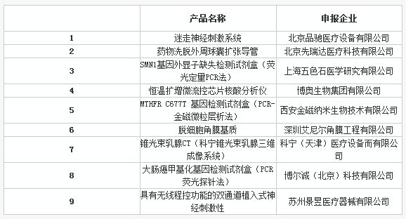 這66項創新醫療器械中,已經有9項獲批上市了。分別為: