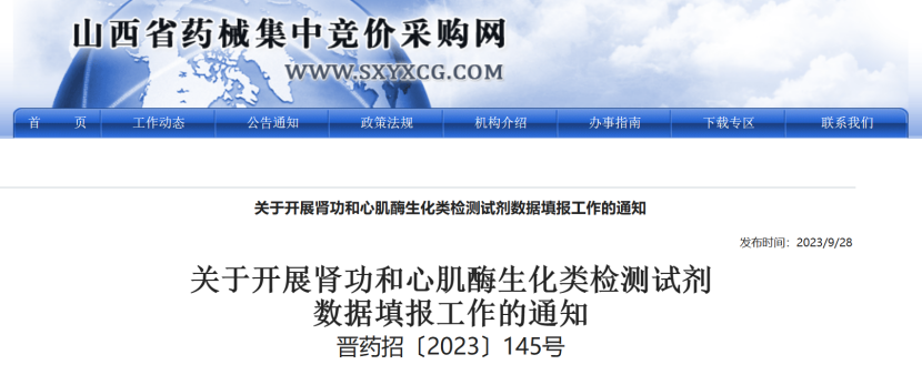 近日,四川、湖北、內蒙古、山西等多省發布通知,根據腎功和心肌酶生化類檢測試劑省際聯盟集中帶量采購工作領導小組《關于開展腎功和心肌酶生化類檢測試劑數據填報工作的通知》(〔2023〕4號)要求,組織開展腎功和心肌酶生化類檢測試劑數據填報工作。