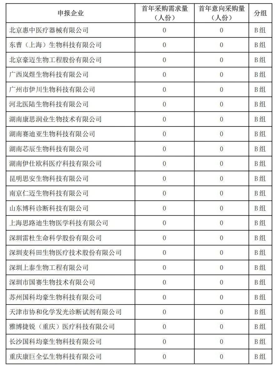 甲狀腺功能檢測試共96家企業參與競價,其中8家企業進入A組,按首年采購需求量排序為,羅氏診斷、邁瑞、貝克曼、西門子、新產業、雅培、安圖生物、邁克生物,外資國產均占半數,且亞輝龍為B組第一,首年意向采購需求、采購量同樣可觀。