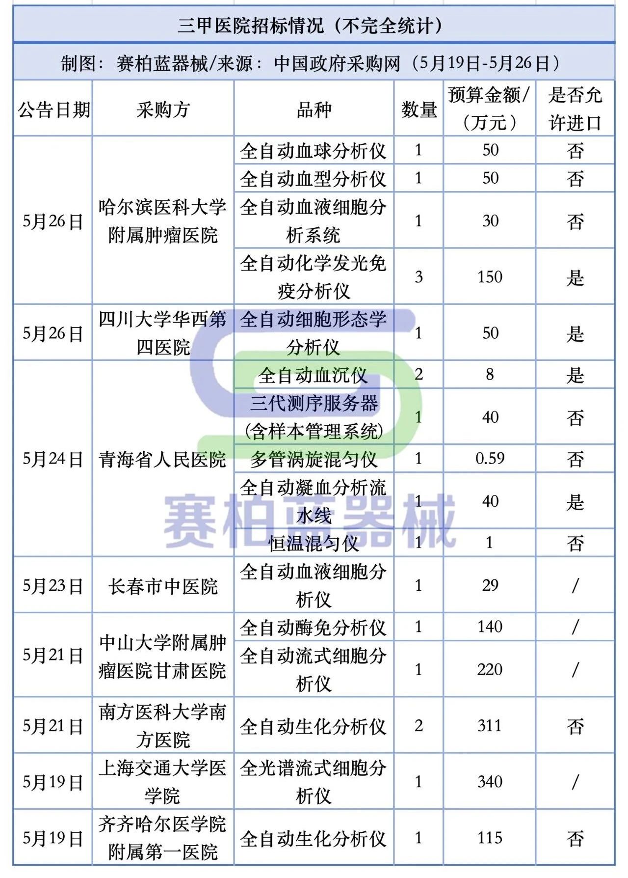 需求品類包括全自動(dòng)化學(xué)發(fā)光免疫分析儀、全自動(dòng)生化分析設(shè)備、全自動(dòng)生化免疫分析流水線、全自動(dòng)鑒定藥敏分析系統(tǒng)、血液細(xì)胞分析儀、全自動(dòng)血細(xì)胞分析流水線、全自動(dòng)酶免工作站、全自動(dòng)尿沉渣分析儀、全自動(dòng)凝血分析儀、液相色譜串聯(lián)質(zhì)譜檢測(cè)系統(tǒng)、全自動(dòng)醫(yī)用PCR分析系統(tǒng)等諸多設(shè)備。
