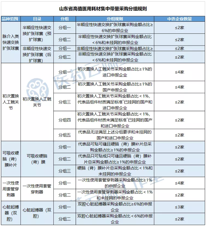 同日,山東省發(fā)布《山東省高值醫(yī)用耗材集中帶量采購文件(征求意見稿)》,擬對冠脈介入類快速交換擴張球囊、初次置換人工髖關(guān)節(jié)、可吸收硬腦(脊)膜補片、一次性使用套管穿刺器、心臟起搏器(雙腔)五款耗材進行帶量采購。