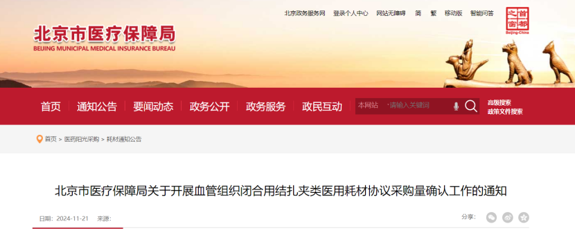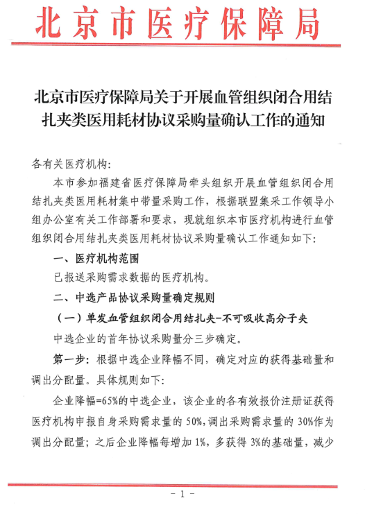 今日(11月21日),北京市醫(yī)保局發(fā)布《北京市醫(yī)療保障局關(guān)于開展血管組織閉合用結(jié)扎夾類醫(yī)用耗材協(xié)議采購量確認(rèn)工作的通知》(附文末),開展結(jié)扎夾集采的協(xié)議采購量確認(rèn)工作。