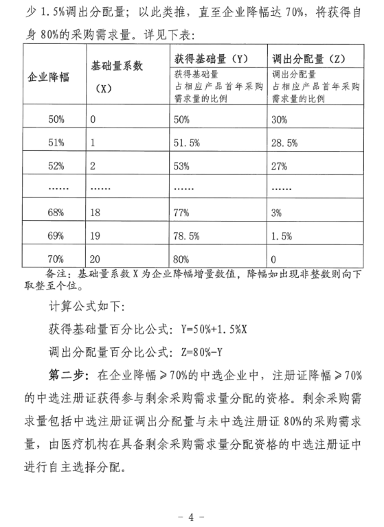 協(xié)議采購量確認(rèn)是集采正式執(zhí)行前的關(guān)鍵一步。根據(jù)目前的集采慣例,按照量價(jià)掛鉤原則,中選產(chǎn)品所能分到的協(xié)議采購量,與產(chǎn)品降幅相關(guān)。降價(jià)較多的產(chǎn)品,在采購量分配中具備一定優(yōu)勢。