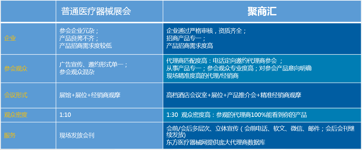 聚商匯是由東方醫(yī)療器械網(wǎng)(www.qxw18.com)運(yùn)營(yíng)的線下招商平臺(tái),該平臺(tái)立足于為國(guó)內(nèi)醫(yī)械全行業(yè)生產(chǎn)/經(jīng)銷型企業(yè)產(chǎn)品招商,以及專業(yè)領(lǐng)域的品牌推介需求提供精準(zhǔn)服務(wù)。