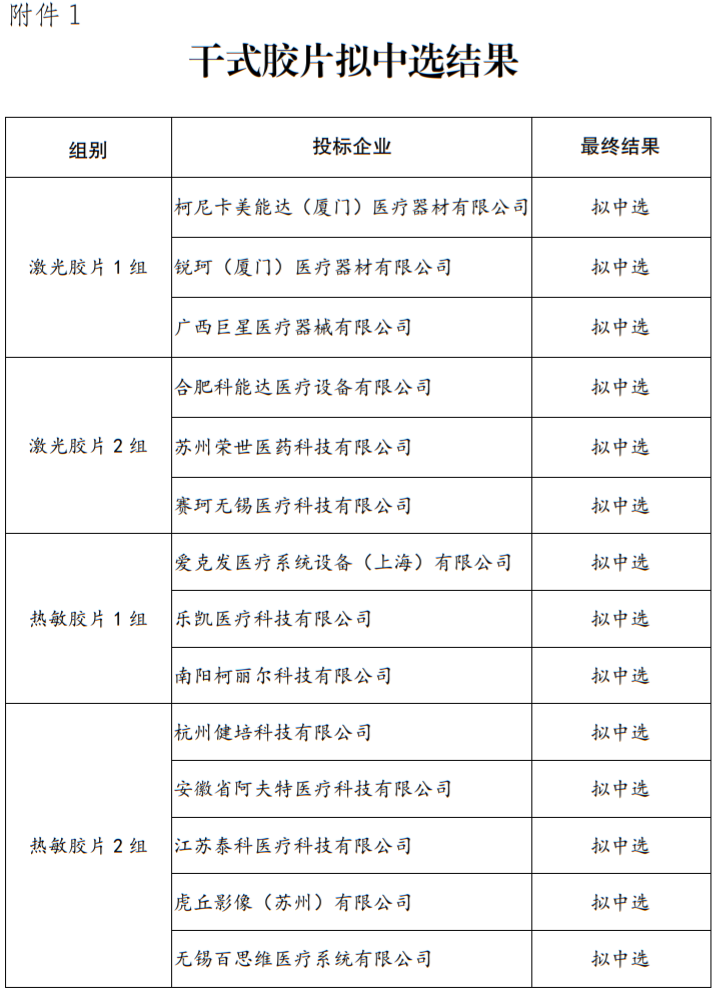 干式膠片擬中選械企包括柯尼卡美能達(dá)、銳珂、廣西巨星等。