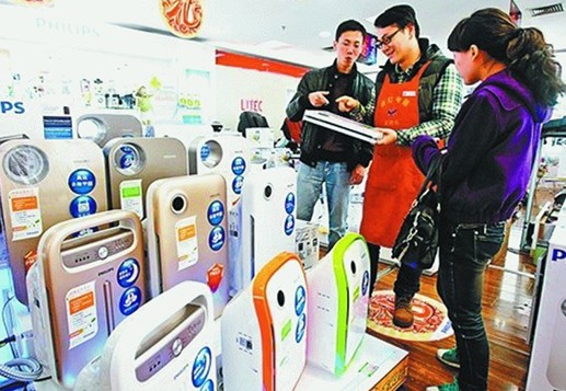近一年多以來全國各地先后受到霧霾污染的影響,消費者對空氣質量問題的關注度不斷上升,帶動了空氣凈化器產品熱銷。在蘇寧某店,記者看到飛利浦、松下、夏普等品牌的空氣凈化器產品展柜前,前來咨詢、購買的消費者絡繹不絕,一位銷售人員告訴記者,近期空氣凈化器產品的銷量有超過三成的增長,部分外資品牌的空氣凈化器產品還出現斷貨的情況,消費者需要預訂才能購買。