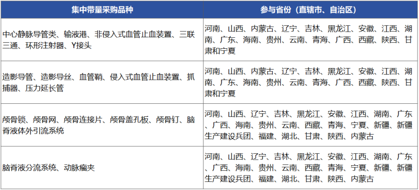 此次集采由河南省牽頭山西、內蒙古、遼寧、吉林、黑龍江、安徽、福建、江西、湖北、湖南、廣東、廣西、海南、貴州、云南、西藏、陜西、甘肅、青海、寧夏、新疆和新疆生產建設兵團等二十三個省(區、兵團),組成省際采購聯盟,對通用介入類和神經外科類醫用耗材開展帶量采購工作。
