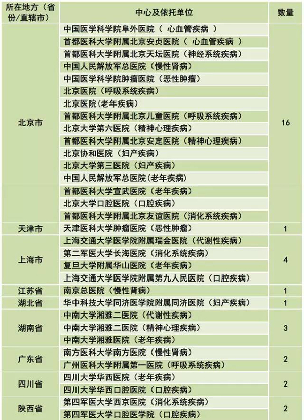 附二:國家臨床醫學研究中心介紹(地域分布)