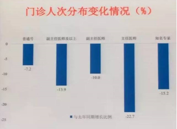 在三級(jí)醫(yī)院里,不同職級(jí)醫(yī)生的接診量也發(fā)生了變化??傮w來(lái)看,改革后,副主任醫(yī)師門(mén)診人次下降了10%,主任醫(yī)師下降了22.7%,知名專(zhuān)家的門(mén)診人次下降了15.2%。“可以看到,大家在就診的時(shí)候更加理性,不盲目追求專(zhuān)家號(hào)。這也緩解了真正需要專(zhuān)家號(hào)的患者掛號(hào)難的問(wèn)題,使得我們的專(zhuān)家資源更能夠用于那些疑難重癥的處置上,而不是我們的專(zhuān)家去看普通病、常見(jiàn)病。”