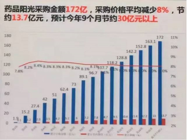此外,藥品費(fèi)用這一項(xiàng),陽(yáng)光采購(gòu)實(shí)現(xiàn)了藥費(fèi)節(jié)省13.7億,累計(jì)藥品平均價(jià)格下降程度超過(guò)了8%。雷海潮介紹說(shuō),4月8日開(kāi)始醫(yī)改后,藥品陽(yáng)光采購(gòu)已產(chǎn)生了172億的市場(chǎng)交易。預(yù)計(jì)全年能夠節(jié)省藥品費(fèi)用在30億元以上。其中,二、三級(jí)醫(yī)院的藥占比從42.2%下降到34.4%,目前下降趨勢(shì)仍在持續(xù)。