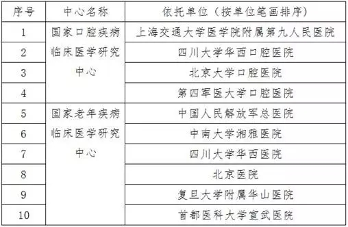 以下為第三批國家臨床醫學研究中心名單