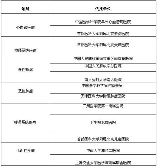 附第一批國家臨床醫學研究中心名單