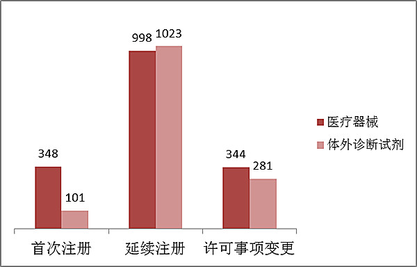 2016年,食品藥品監(jiān)管總局共受理醫(yī)療器械注冊(cè)、延續(xù)注冊(cè)和許可事項(xiàng)變更申請(qǐng)8920項(xiàng),與2015年相比注冊(cè)受理項(xiàng)目減少5.1%。