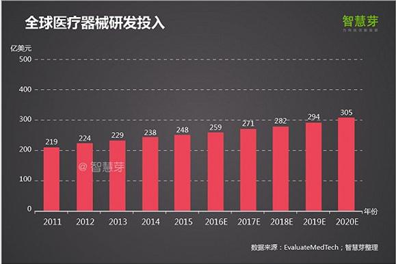 與此同時(shí),全球醫(yī)療器械市場(chǎng)的研發(fā)投入也保持著穩(wěn)定增長(zhǎng)態(tài)勢(shì),2015年達(dá)到248億美元。