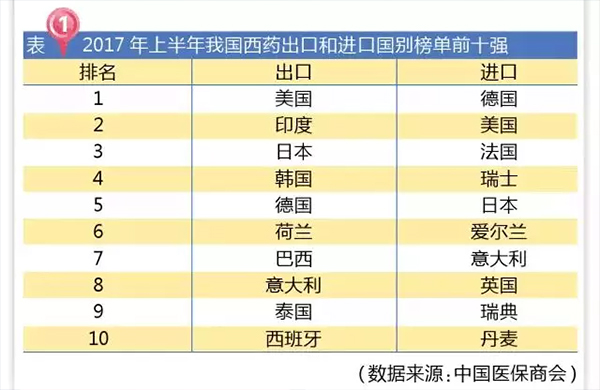 我國西藥類產品在上半年出口到200個國家和地區,其中對前十大目的國的出口額占比高達57.5%。