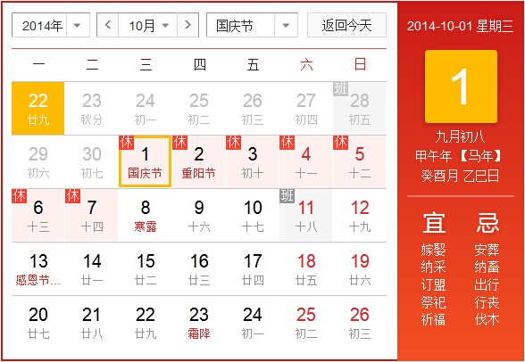 2014年北京華康普美科技有限公司,“國(guó)慶節(jié)”假期為:10月1日(星期三)至10月7日(星期二)共放假7天,10月8日(星期三)正常上班。