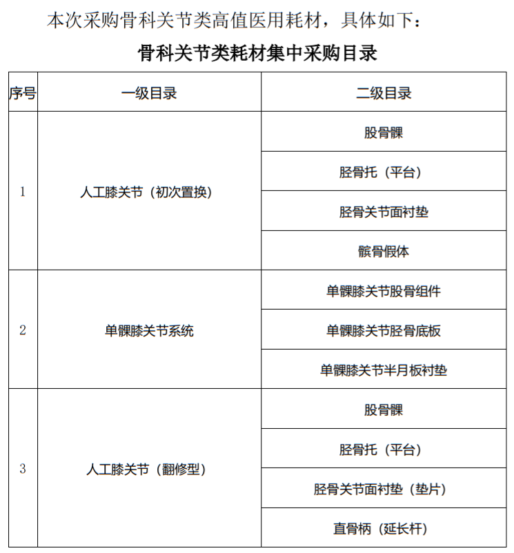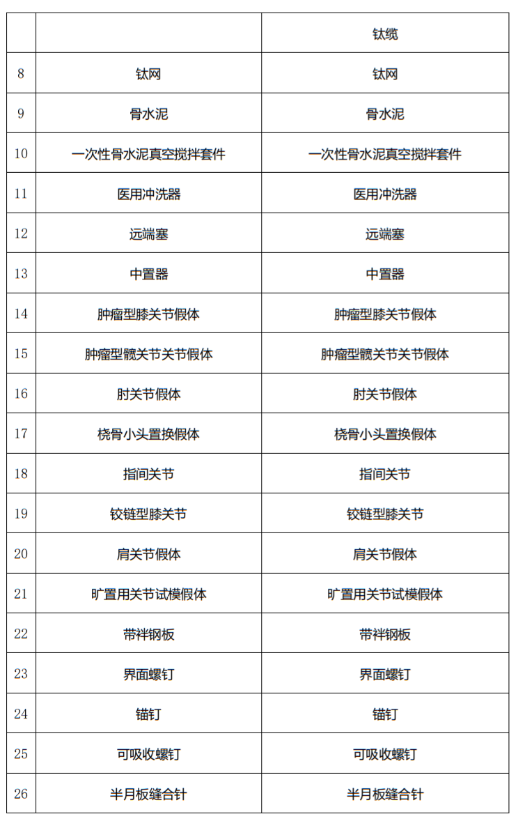 具體涉及人工膝關(guān)節(jié)、單髁膝關(guān)節(jié)系統(tǒng)、人工髖關(guān)節(jié)、假體周?chē)钦垆摪濉⒁淮涡怨撬嗾婵諗嚢杼准?9大類(lèi)54個(gè)品種的骨科耗材。