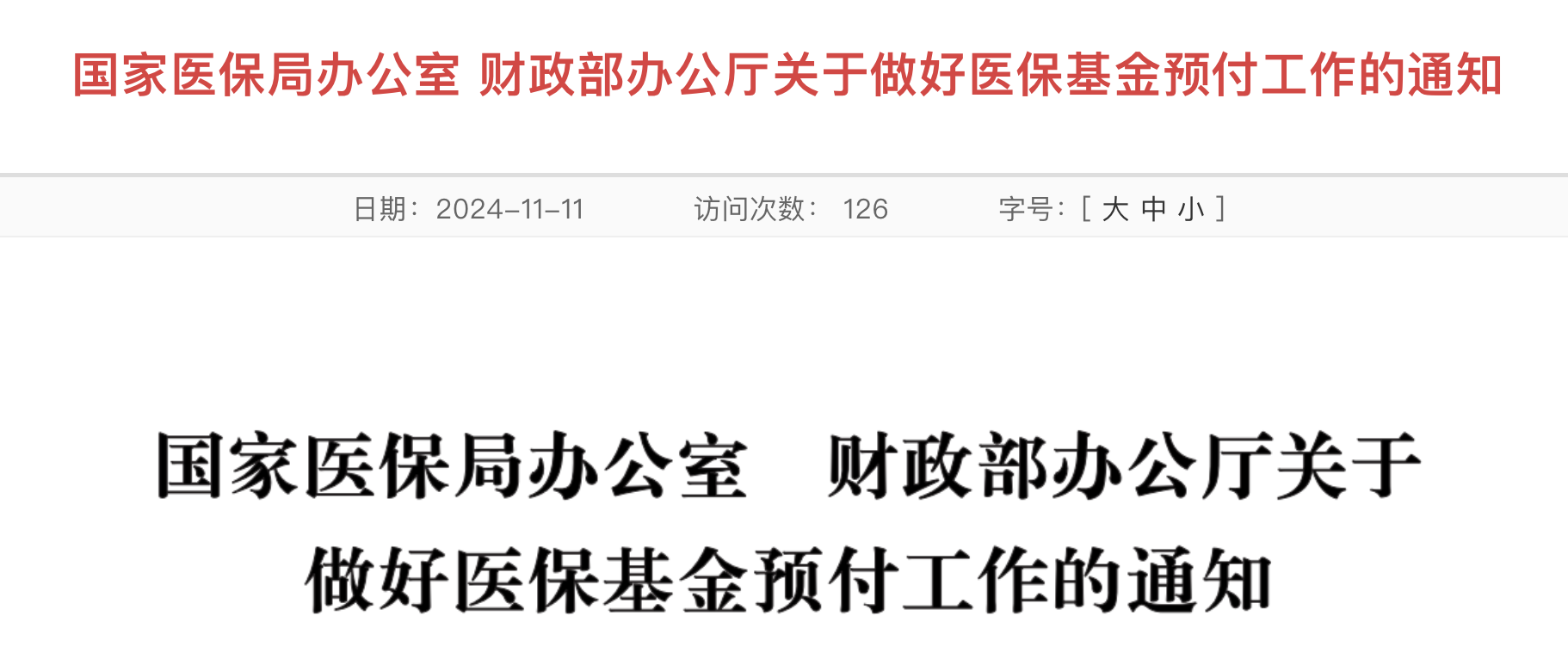 今日(11月11日),國家醫保局辦公室、財政部辦公廳發布《關于做好醫?;痤A付工作的通知》(以下簡稱“通知”)(全文附文末)。