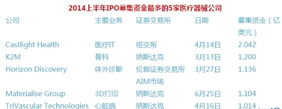 今年出現的另一個新趨勢是,過去公司們更愿意保持獨立,而現在則期望交易。分析顯示,今年上半年醫療器械公司通過IPO募集了13億美元資金。這個數字比2013年全年的9億美元還要多44%。