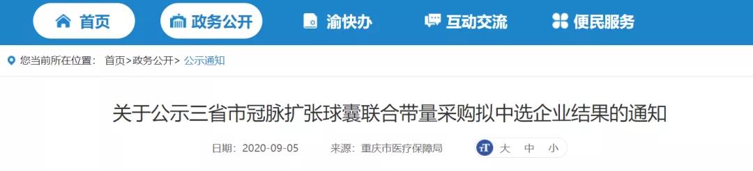 9月5日,重慶市醫(yī)保局發(fā)布《關(guān)于公示三省市冠脈擴(kuò)張球囊聯(lián)合帶量采購(gòu)擬中選企業(yè)結(jié)果的通知》。