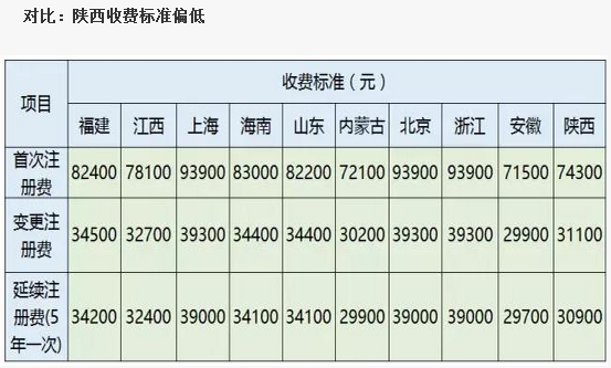 與其他收取醫療器械注冊費的9個省份相比,陜西省的收費標準還是偏低的,也就比安徽和內蒙古貴了點
