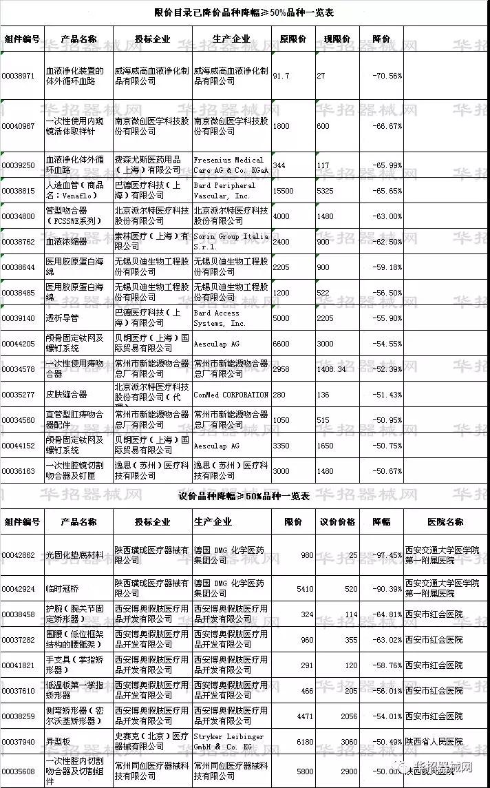 附:限價目錄已降價品種、議價品種降幅≥50%降價一覽