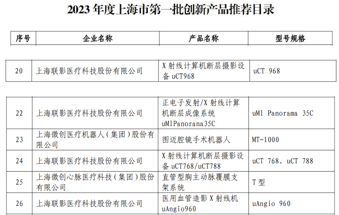 附:《2023年度上海市第一批創新產品推薦目錄》(器械部分)