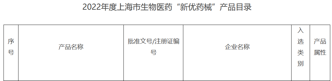 《2022年度上海市生物醫藥“新優藥械”產品目錄》(器械部分)