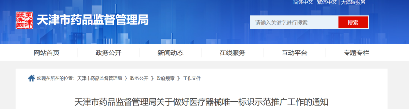 近日,天津市藥監(jiān)局發(fā)布《天津市藥品監(jiān)督管理局關于做好醫(yī)療器械唯一標識示范推廣工作的通知》(以下簡稱《通知》)。
