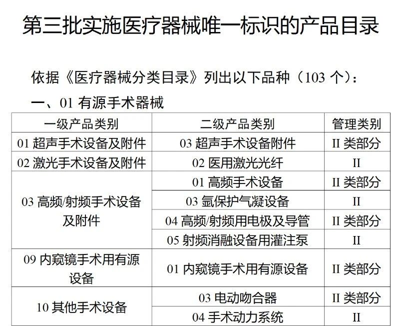 今年2月,國家藥監(jiān)局、國家衛(wèi)健委、國家醫(yī)保局發(fā)布《關于做好第三批實施醫(yī)療器械唯一標識工作的公告》(以下簡稱《公告》),按照風險程度和監(jiān)管需要,確定部分臨床需求量較大的一次性使用產(chǎn)品、集中帶量采購中選產(chǎn)品、醫(yī)療美容相關產(chǎn)品等部分第二類醫(yī)療器械作為第三批醫(yī)療器械唯一標識實施品種。