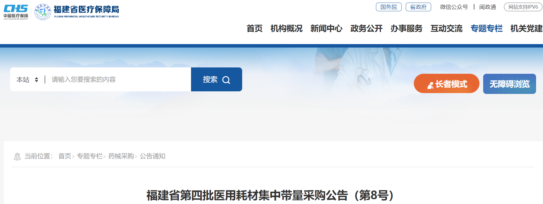 10月31日,福建醫保局發布《福建省第四批醫用耗材集中帶量采購公告(第8號)》(簡稱《公告》)。
