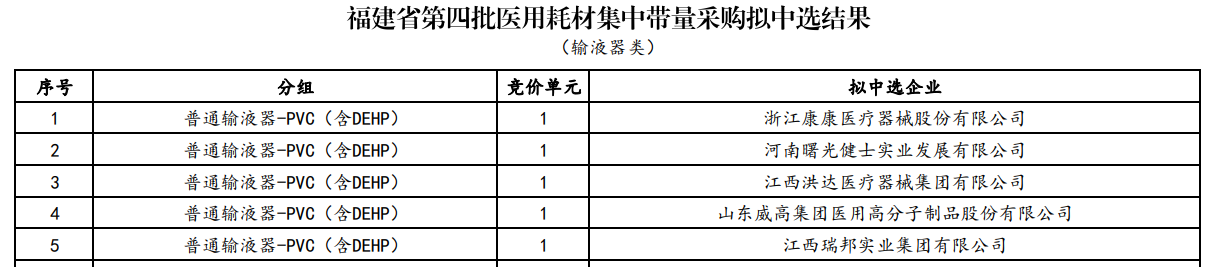10月發布的《福建省第四批醫用耗材集中帶量采購公告(第6號)》公布了上述四類耗材采購需求量,其中普通輸液器-PVC(含DEHP)最高,達到了13686811個。