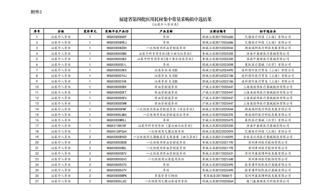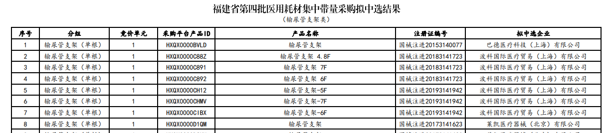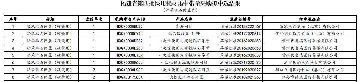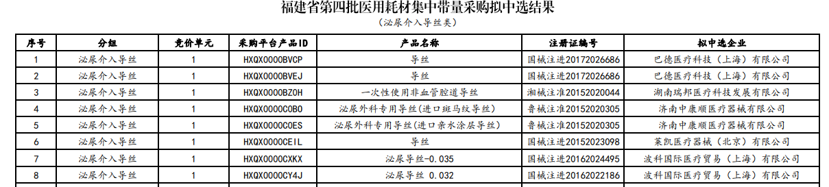 根據此前發布的《福建省第四批醫用耗材集中帶量采購文件(征求意見稿)》,本次集采將圍繞輸液器、泌尿取石網籃、泌尿介入導絲、輸尿管支架等4類醫用耗材進行開展。